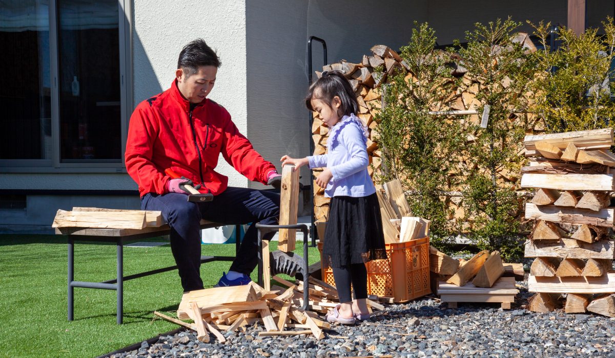 「薪割りをすることや火をつけることで、今までなかった自然との触れ合いが生まれるし。自分がやっていると子供もやりたがるんです。子供にも体験させてあげることで、子供への教育にもなってるんですよね。」